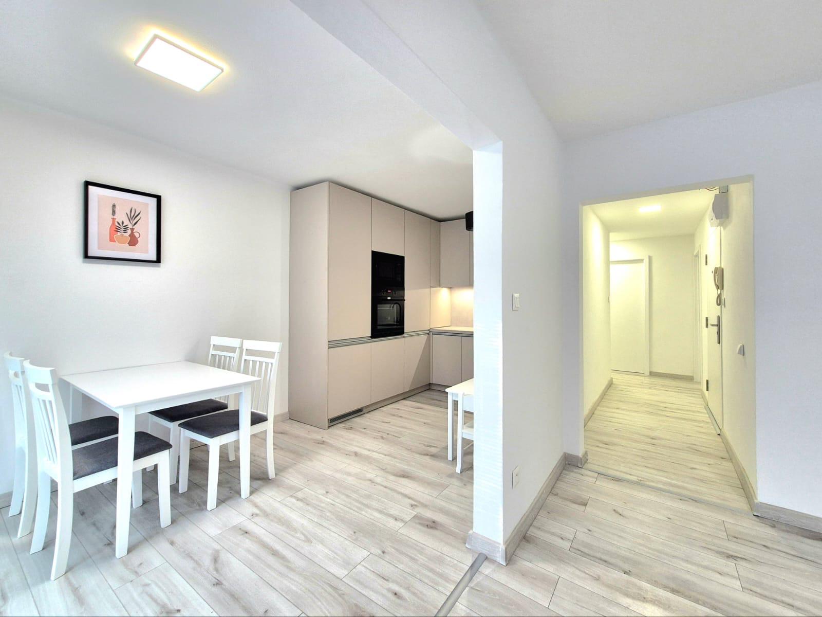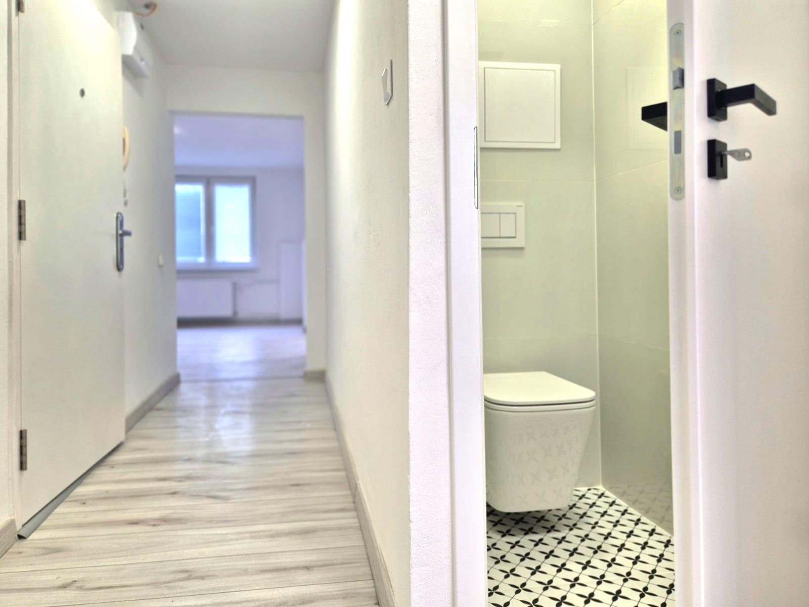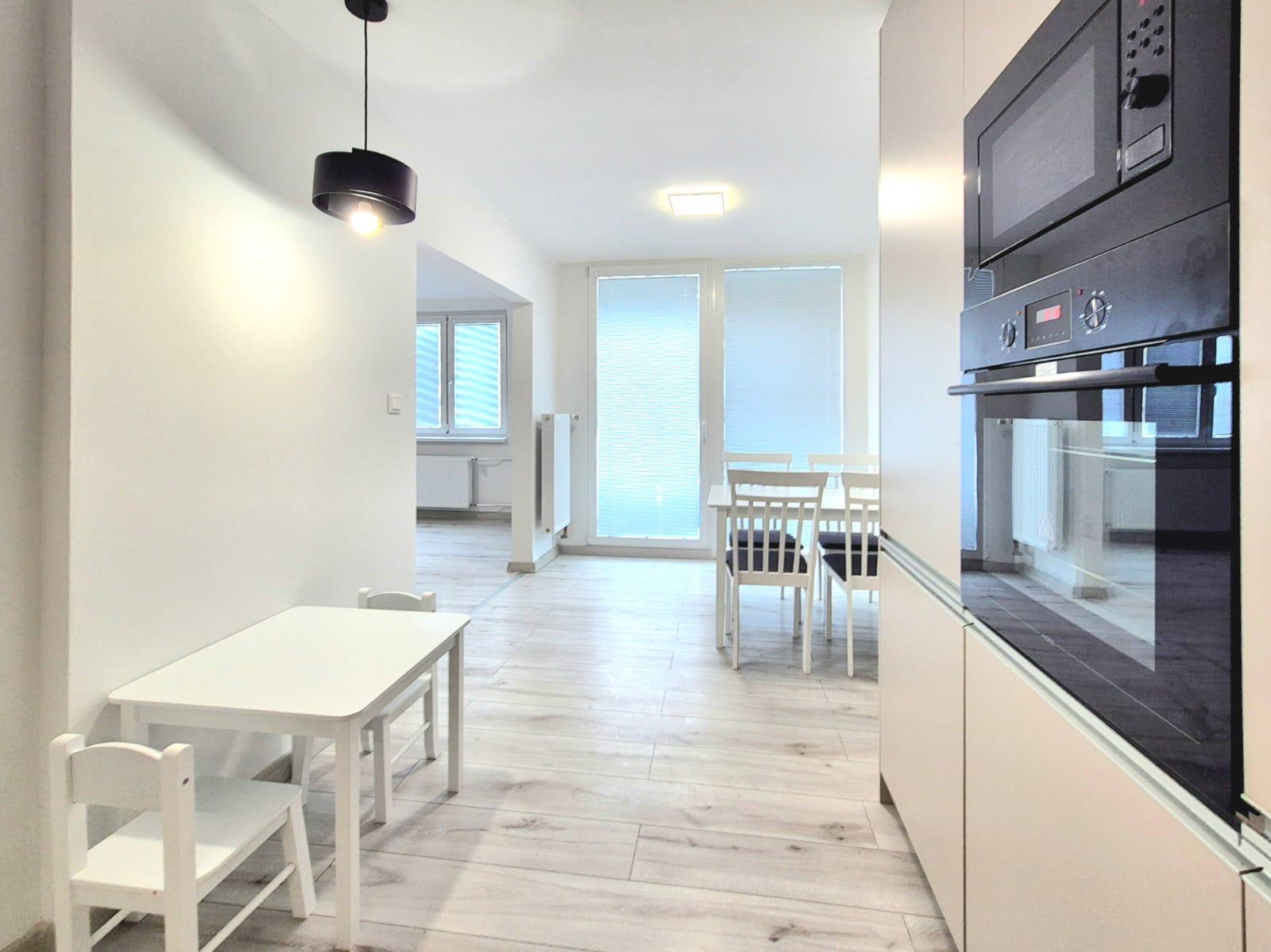 Byt o rozlohe 64 m² spolu s loggiou sa nachádza na treťom poschodí z troch bytového domu s orientáciou na JZ. Byt disponuje chodbou, kuchyňou, kúpeľňou, samostatným WC, tromi izbami, loggiou a pivnicou umiestnenou v suteréne bytového domu. Byt momentálne prešiel kompletnou hĺbkovou rekonštrukciou. Súčasťou rekonštrukcie boli zhotovené nové stierky aj stropy všetkých miestností, podhľady, nové žalúzie, nové vstupné bezpečnostné dvere SECURIDO, nové interiérové dvere so zárubňami, nové laminátové vode odolné podlahy, nová rohová kuchynská linka so spotrebičmi (sklo keramická indukčná varná doska, elektrická rúra, mikrovlnná rúra, digestor, umývačka riadu, zabudovaná chladnička s mrazničkou, poličky, kuchynský stôl so štyrmi stoličkami, malý detský stôl s dvomi stoličkami), nové radiátory KORADO, novo zrekonštruovaná kúpeľňa s novou klasickou vaňou, novou práčkou, novým umývadlom s odkladacím priestorom pod umývadlom, zrkadlom, policovou skrinkou a novým samostatným WC. Nový dizajnový obklad ladený modernými farebnými odtieňmi vytvára vyšší štandard súčasného moderného bývania. Súčasťou rekonštrukcie boli v byte taktiež vymenené nové elektroinštalačné rozvody, svietidlá vypínače zásuvky a nové rozvody vody s novými modernými vodovodnými batériami. V byte je zavedený internet a káblová TV. V rámci rekonštrukcie v bytovom dome boli vymenené stúpacie rozvody a nová strešná krytina s izolantom. Mesačné náklady na bývanie pre 3 osoby sú cca 140 Eur+ el. energia/ mesiac. V okolí bytového domu je dostatočné množstvo parkovacích miest. Vďaka dobrej lokalite do centra mesta pešou chôdzou sa dá dostať do 10 minút. Kompletná občianska vybavenosť je v okruhu 250 m. Byt je pripravený k užívaniu ihneď.